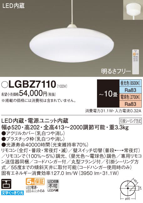 Panasonic ¥Ú¥ó¥À¥ó¥È LGBZ7110