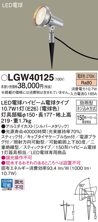 Panasonic ¥¨¥¯¥¹¥Æ¥ê¥¢¥¹¥Ý¥Ã¥È¥é¥¤¥È LGW40125