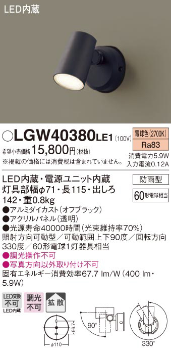 Panasonic ¥¨¥¯¥¹¥Æ¥ê¥¢¥é¥¤¥È LGW40380LE1