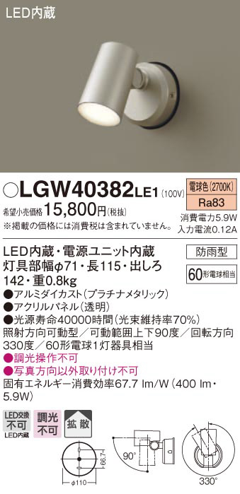 Panasonic ¥¨¥¯¥¹¥Æ¥ê¥¢¥é¥¤¥È LGW40382LE1