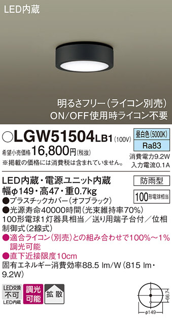 Panasonic ¥¨¥¯¥¹¥Æ¥ê¥¢¥é¥¤¥È LGW51504LB1