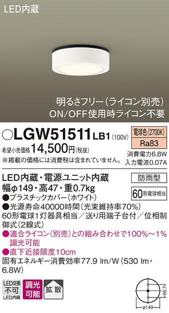 Panasonic ¥¨¥¯¥¹¥Æ¥ê¥¢¥é¥¤¥È LGW51511LB1
