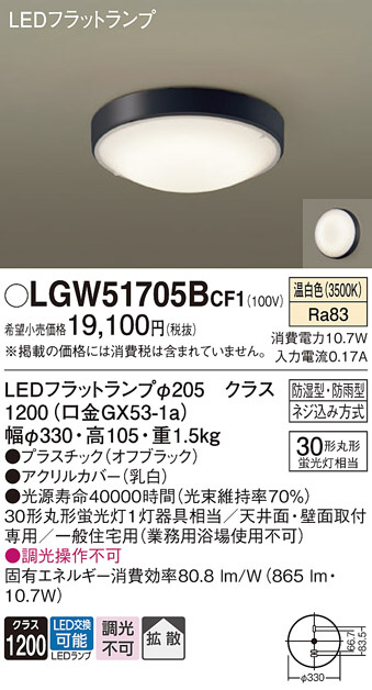 Panasonic ¥¨¥¯¥¹¥Æ¥ê¥¢¥é¥¤¥È LGW51705BCF1