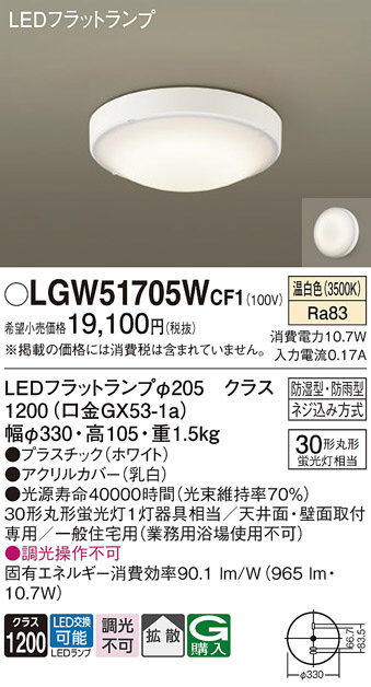 Panasonic ¥¨¥¯¥¹¥Æ¥ê¥¢¥é¥¤¥È LGW51705WCF1