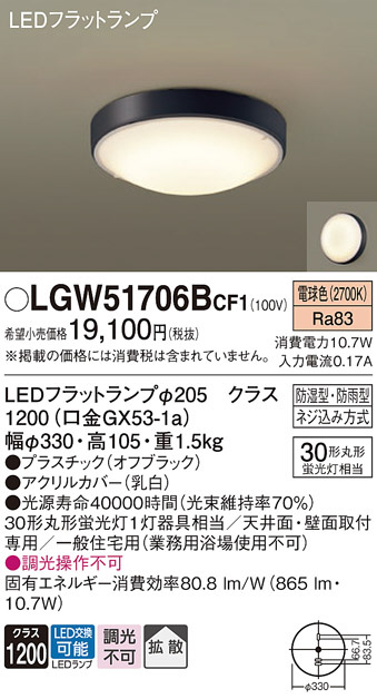 Panasonic ¥¨¥¯¥¹¥Æ¥ê¥¢¥é¥¤¥È LGW51706BCF1