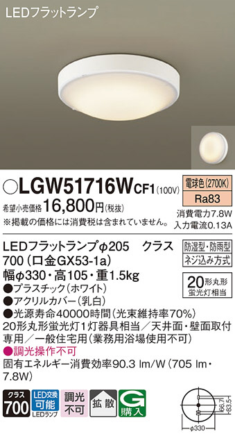 Panasonic ¥¨¥¯¥¹¥Æ¥ê¥¢¥é¥¤¥È LGW51716WCF1