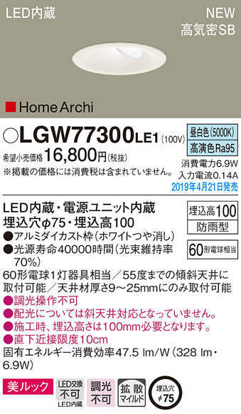 Panasonic LED ¥¨¥¯¥¹¥Æ¥ê¥¢¡¦¥¢¥¦¥È¥É¥¢ LGW77300LE1