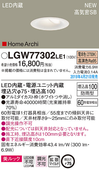 Panasonic LED ¥¨¥¯¥¹¥Æ¥ê¥¢¡¦¥¢¥¦¥È¥É¥¢ LGW77302LE1