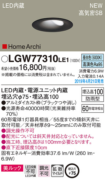 Panasonic LED ¥¨¥¯¥¹¥Æ¥ê¥¢¡¦¥¢¥¦¥È¥É¥¢ LGW77310LE1