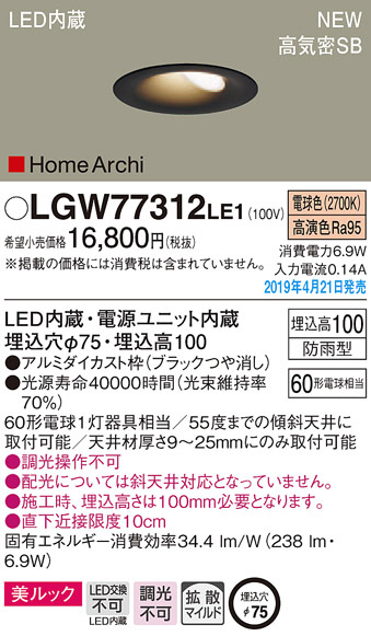 Panasonic LED ¥¨¥¯¥¹¥Æ¥ê¥¢¡¦¥¢¥¦¥È¥É¥¢ LGW77312LE1