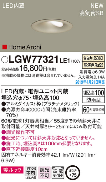 Panasonic LED ¥¨¥¯¥¹¥Æ¥ê¥¢¡¦¥¢¥¦¥È¥É¥¢ LGW77321LE1