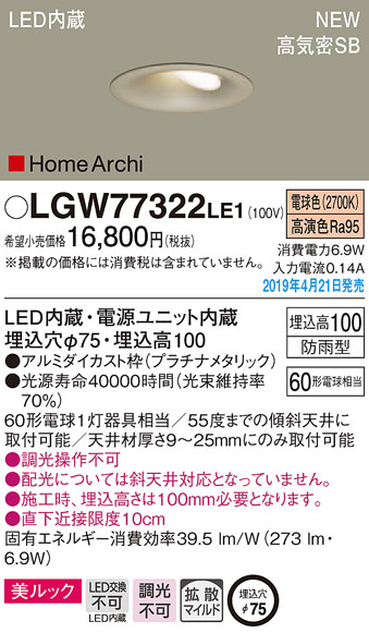 Panasonic LED ¥¨¥¯¥¹¥Æ¥ê¥¢¡¦¥¢¥¦¥È¥É¥¢ LGW77322LE1