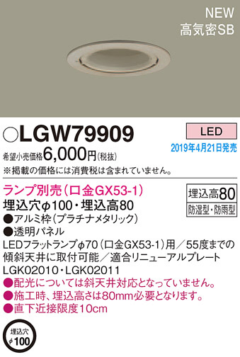 Panasonic LED ¥¨¥¯¥¹¥Æ¥ê¥¢¡¦¥¢¥¦¥È¥É¥¢ LGW79909