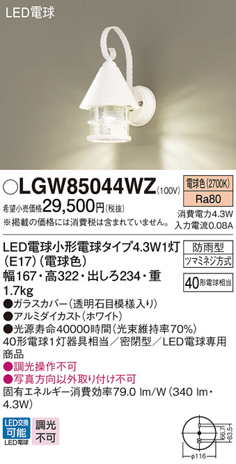 Panasonic ¥¨¥¯¥¹¥Æ¥ê¥¢¥é¥¤¥È LGW85044WZ