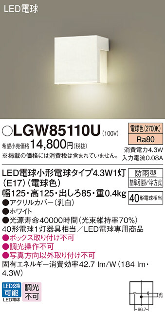 Panasonic ¥¨¥¯¥¹¥Æ¥ê¥¢¥é¥¤¥È LGW85110U