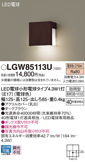 Panasonic ¥¨¥¯¥¹¥Æ¥ê¥¢¥é¥¤¥È LGW85113U