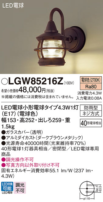 Panasonic ¥¨¥¯¥¹¥Æ¥ê¥¢¥é¥¤¥È LGW85216Z
