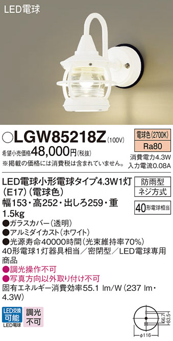 Panasonic ¥¨¥¯¥¹¥Æ¥ê¥¢¥é¥¤¥È LGW85218Z