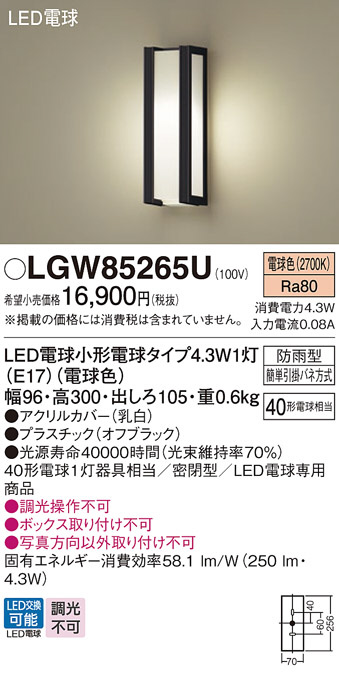Panasonic ¥¨¥¯¥¹¥Æ¥ê¥¢¥é¥¤¥È LGW85265U