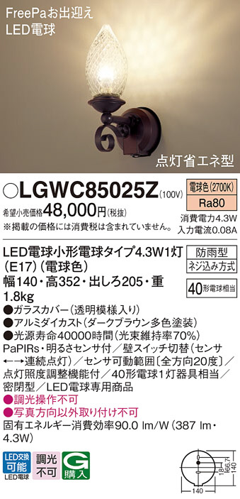 Panasonic ¥¨¥¯¥¹¥Æ¥ê¥¢¥é¥¤¥È LGWC85025Z