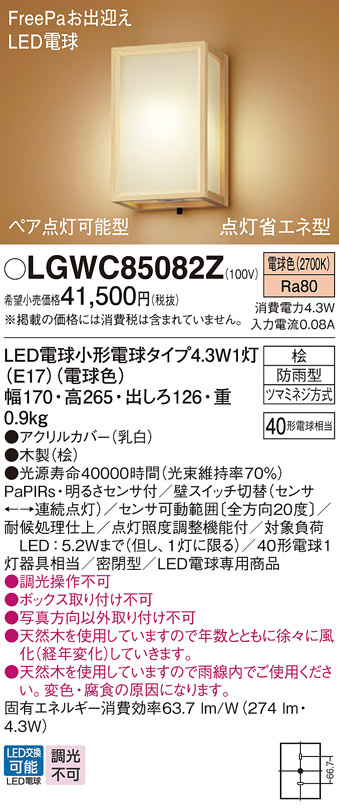 Panasonic ¥¨¥¯¥¹¥Æ¥ê¥¢¥é¥¤¥È LGWC85082Z