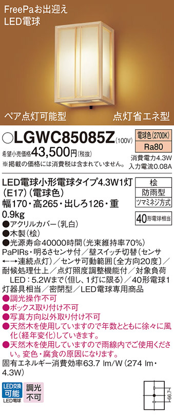 Panasonic ¥¨¥¯¥¹¥Æ¥ê¥¢¥é¥¤¥È LGWC85085Z