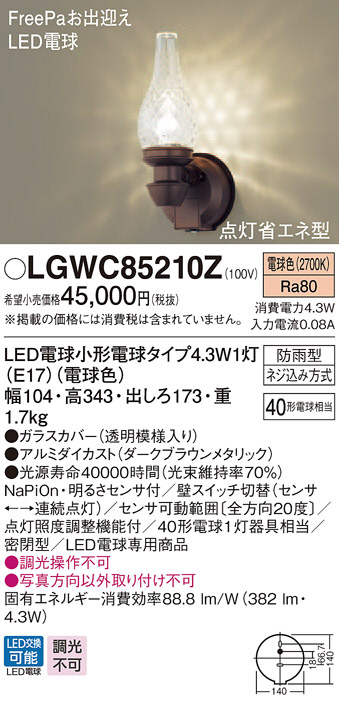 Panasonic ¥¨¥¯¥¹¥Æ¥ê¥¢¥é¥¤¥È LGWC85210Z