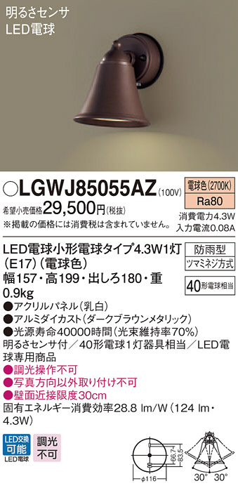 Panasonic ¥¨¥¯¥¹¥Æ¥ê¥¢¥é¥¤¥È LGWJ85055AZ