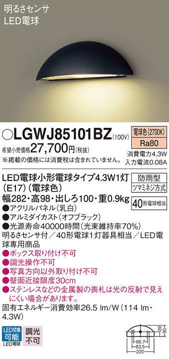Panasonic ¥¨¥¯¥¹¥Æ¥ê¥¢¥é¥¤¥È LGWJ85101BZ