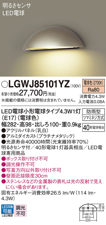 Panasonic ¥¨¥¯¥¹¥Æ¥ê¥¢¥é¥¤¥È LGWJ85101YZ