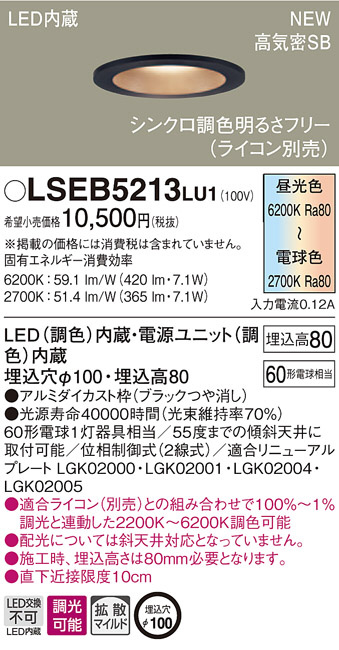 Panasonic LED ¥À¥¦¥ó¥é¥¤¥È LSEB5213LU1