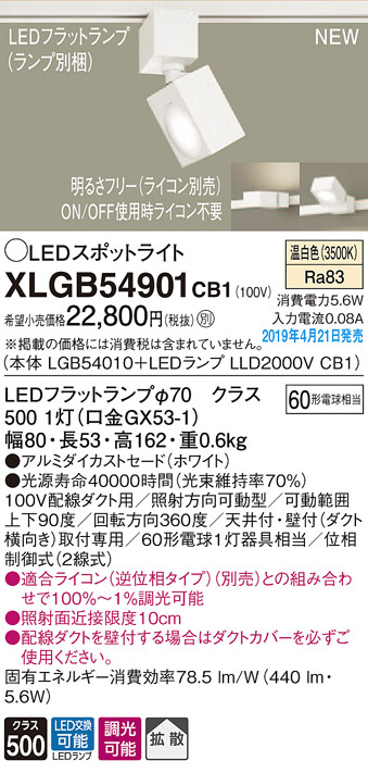 Panasonic LED ¥¹¥Ý¥Ã¥È¥é¥¤¥È XLGB54901CB1