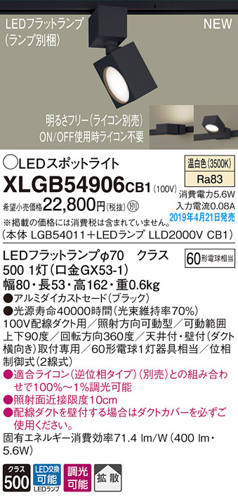 Panasonic LED ¥¹¥Ý¥Ã¥È¥é¥¤¥È XLGB54906CB1