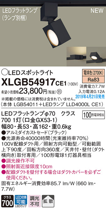 Panasonic LED ¥¹¥Ý¥Ã¥È¥é¥¤¥È XLGB54917CE1