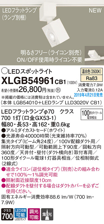 Panasonic LED ¥¹¥Ý¥Ã¥È¥é¥¤¥È XLGB54961CB1