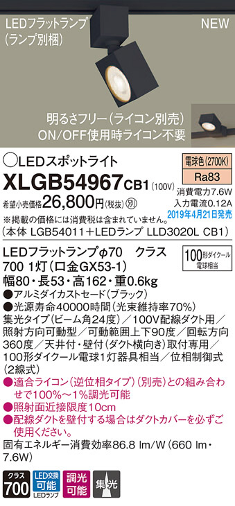 Panasonic LED ¥¹¥Ý¥Ã¥È¥é¥¤¥È XLGB54967CB1