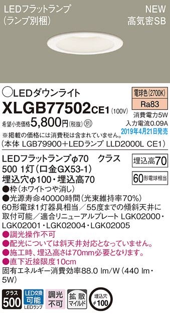 Panasonic LED ¥À¥¦¥ó¥é¥¤¥È XLGB77502CE1