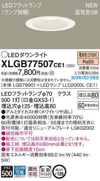 Panasonic LED ¥À¥¦¥ó¥é¥¤¥È XLGB77507CE1