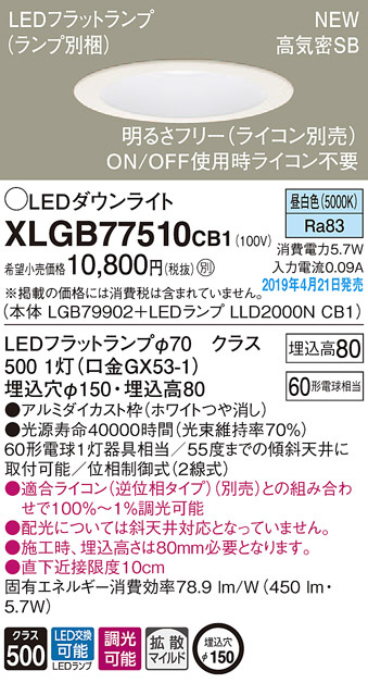 Panasonic LED ¥À¥¦¥ó¥é¥¤¥È XLGB77510CB1