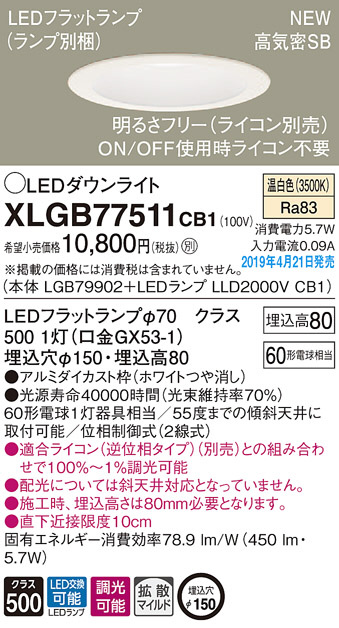 Panasonic LED ¥À¥¦¥ó¥é¥¤¥È XLGB77511CB1