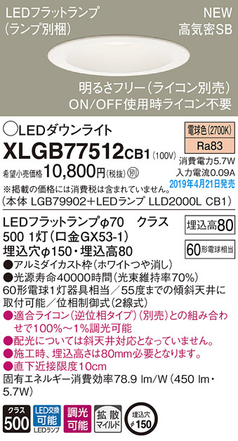 Panasonic LED ¥À¥¦¥ó¥é¥¤¥È XLGB77512CB1