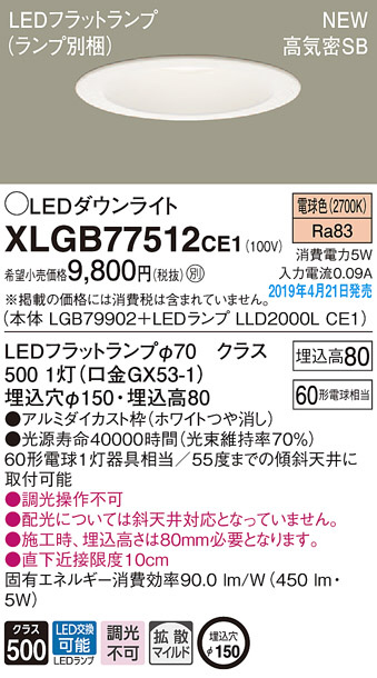 Panasonic LED ¥À¥¦¥ó¥é¥¤¥È XLGB77512CE1