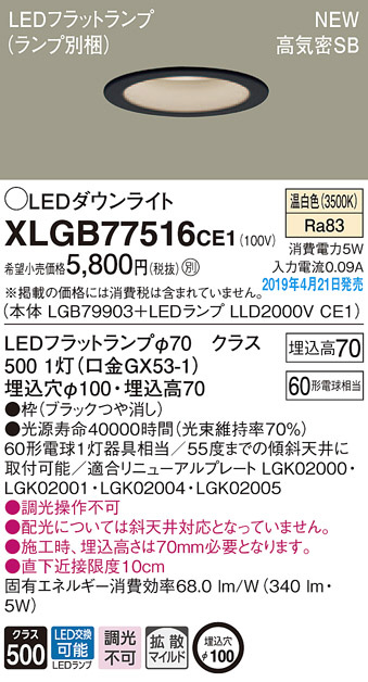 Panasonic LED ¥À¥¦¥ó¥é¥¤¥È XLGB77516CE1