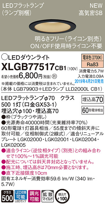 Panasonic LED ¥À¥¦¥ó¥é¥¤¥È XLGB77517CB1
