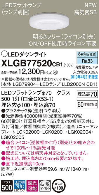 Panasonic LED ¥À¥¦¥ó¥é¥¤¥È XLGB77520CB1