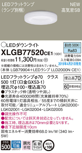 Panasonic LED ¥À¥¦¥ó¥é¥¤¥È XLGB77520CE1