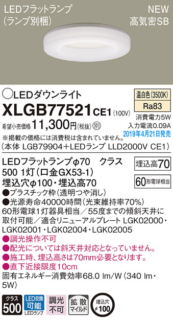 Panasonic LED ¥À¥¦¥ó¥é¥¤¥È XLGB77521CE1