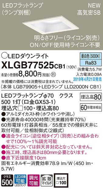 Panasonic LED ¥À¥¦¥ó¥é¥¤¥È XLGB77525CB1