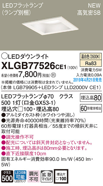 Panasonic LED ¥À¥¦¥ó¥é¥¤¥È XLGB77526CE1