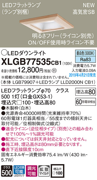 Panasonic LED ¥À¥¦¥ó¥é¥¤¥È XLGB77535CB1